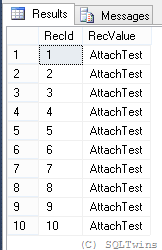 RecValue NVARCHAR(20) DEFAULT 'AttachTest'